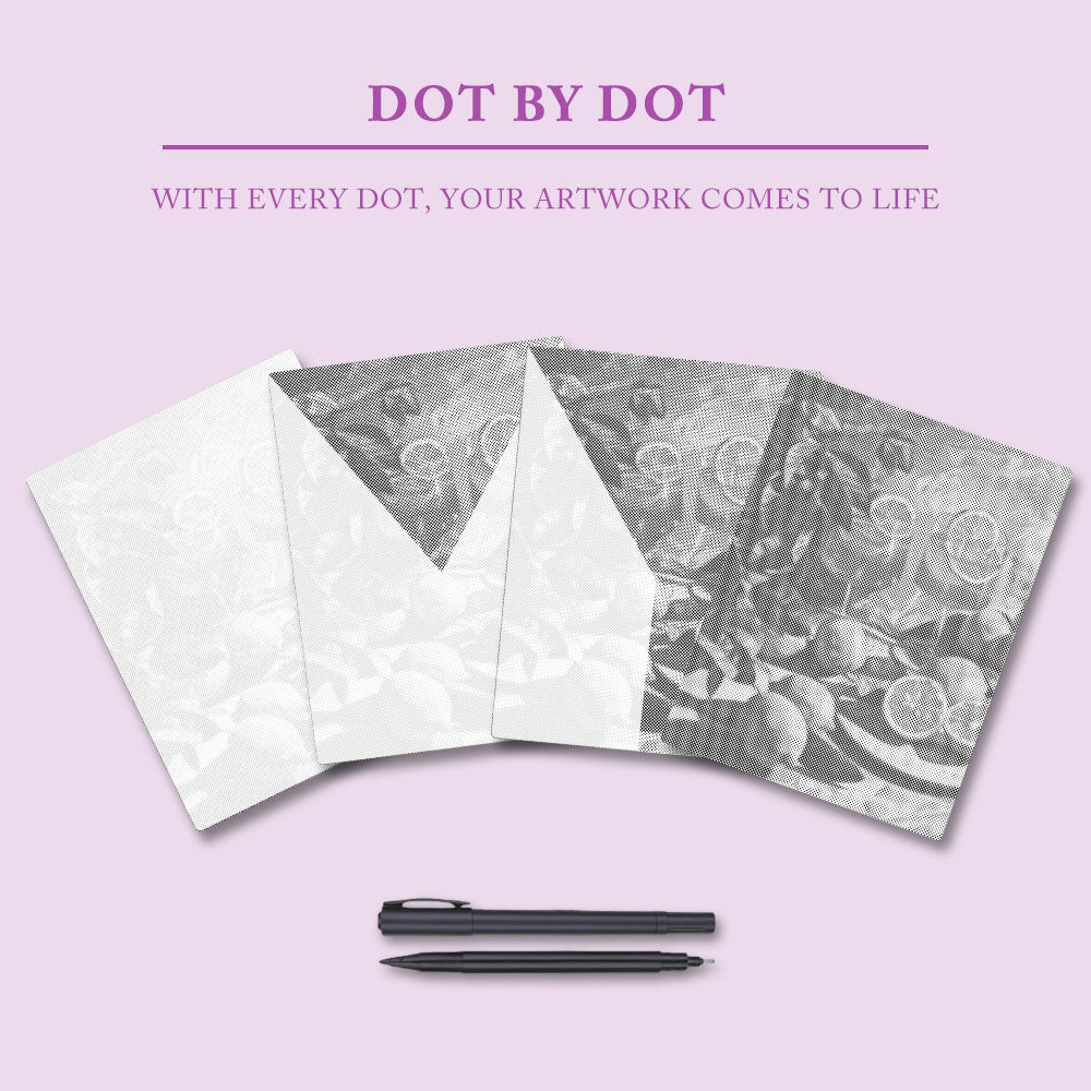 Vårt specialdesignade prickgrafitmålningsset innehåller allt du behöver för att börja skapa direkt: