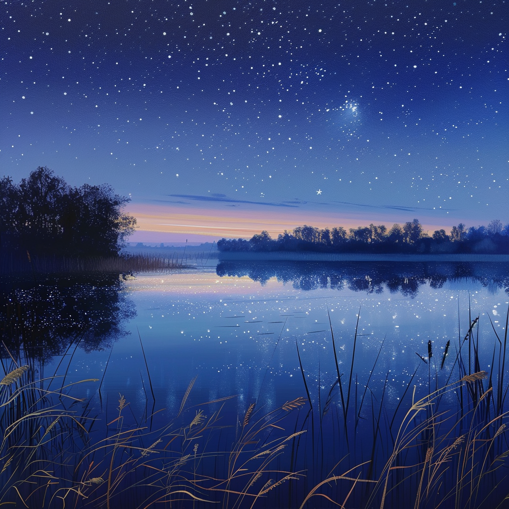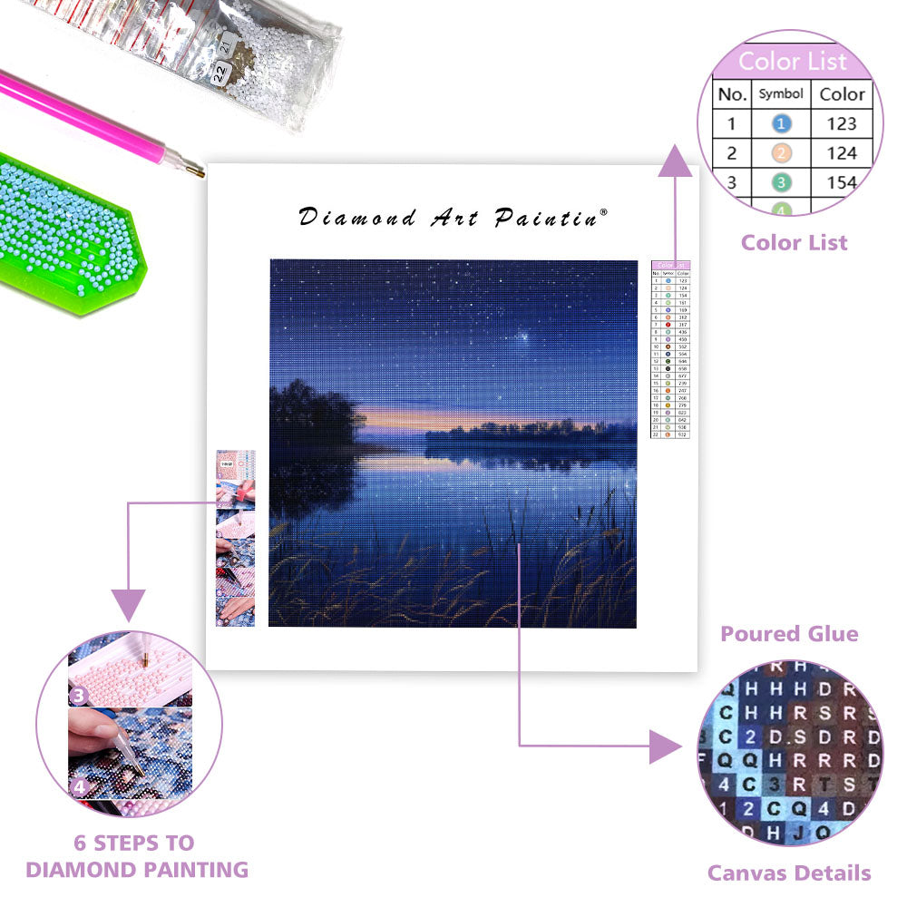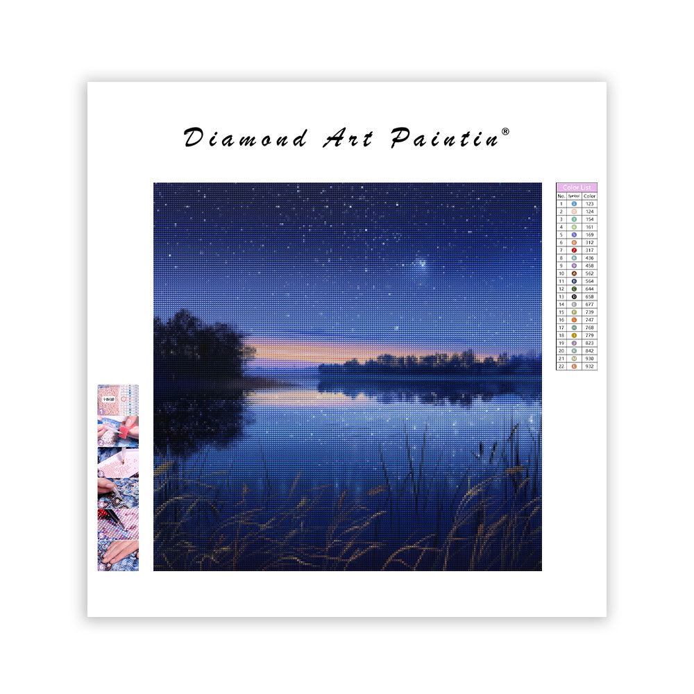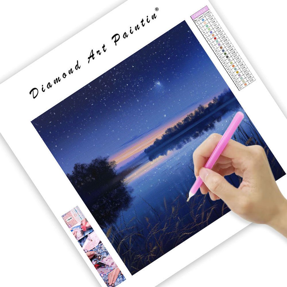 Tyst sjö med stjärnor - Diamantmålning